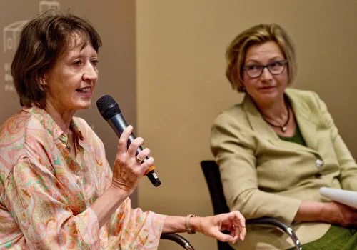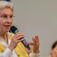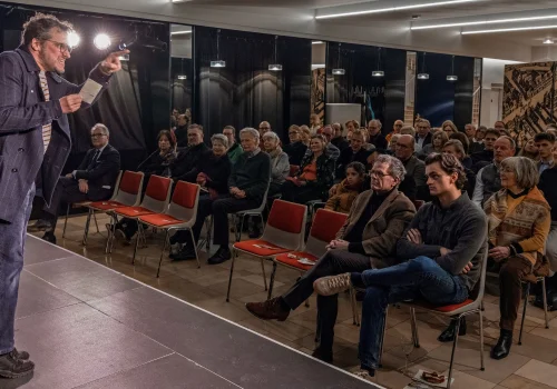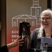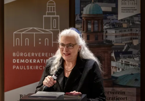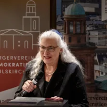 Am 4. Februar 2025 sprach Rabbinerin Prof. Dr. Elisa Klapheck im Künstlerhaus Mousonturm, Frankfurt, zum Thema „Jüdischer Anteil an der deutschen Demokratie“ und diskutierte dazu